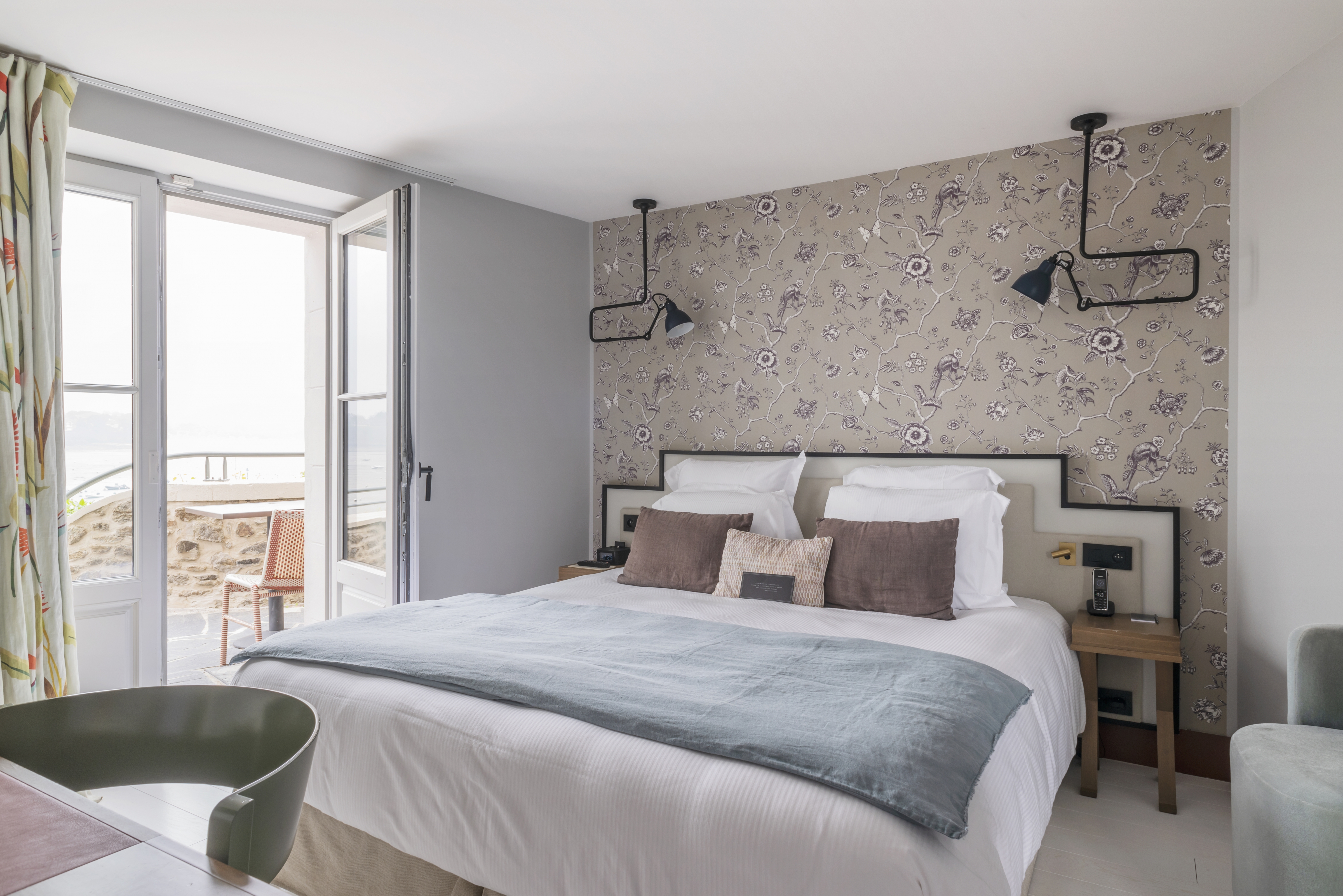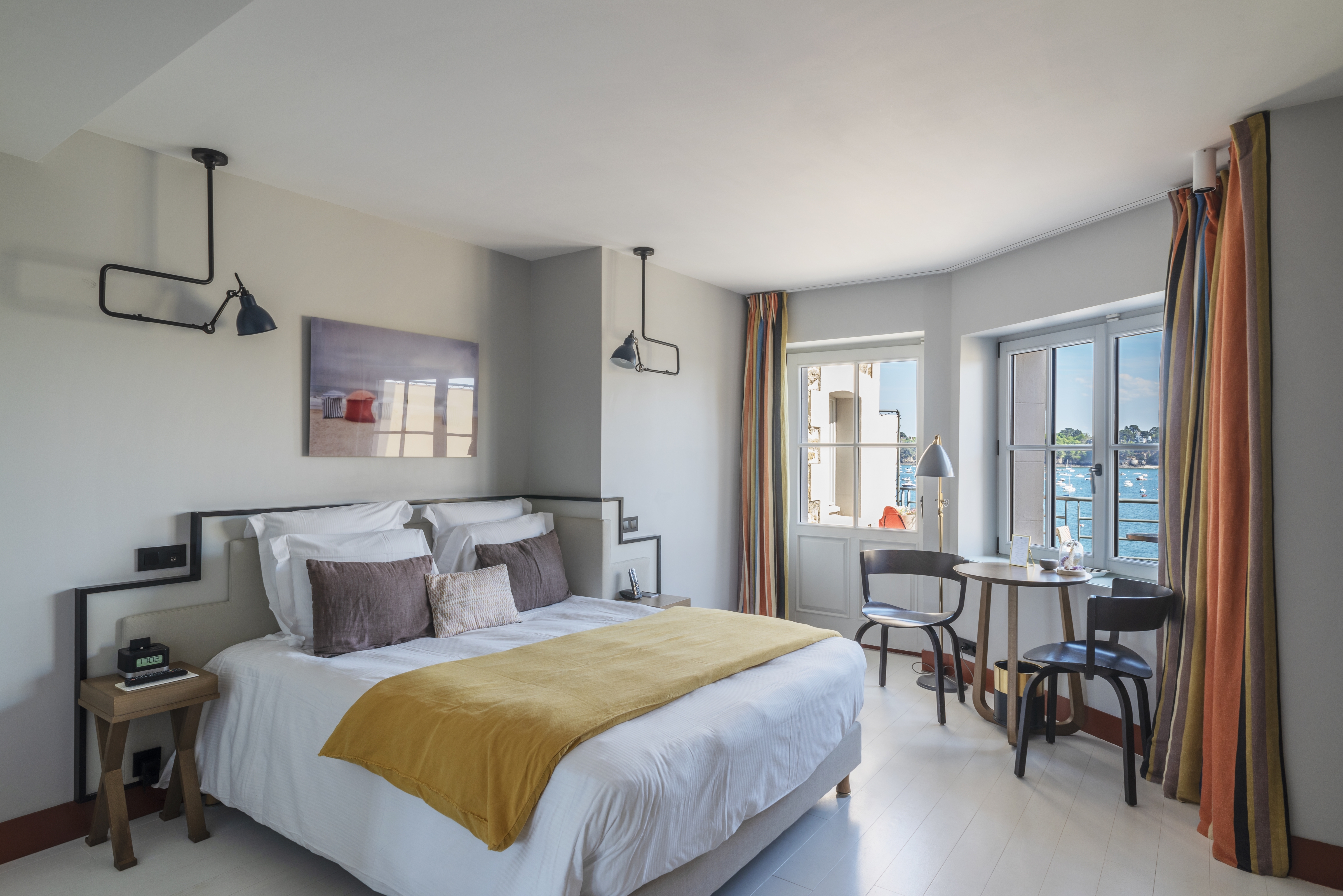 Our Deluxe sea view balcony rooms offer the privilege of enjoying an equipped outdoor space, allowing you to relax facing the sea and enjoy your breakfast under the sun. Elegant and warm, they offer an incomparable view of the Priory Bay.