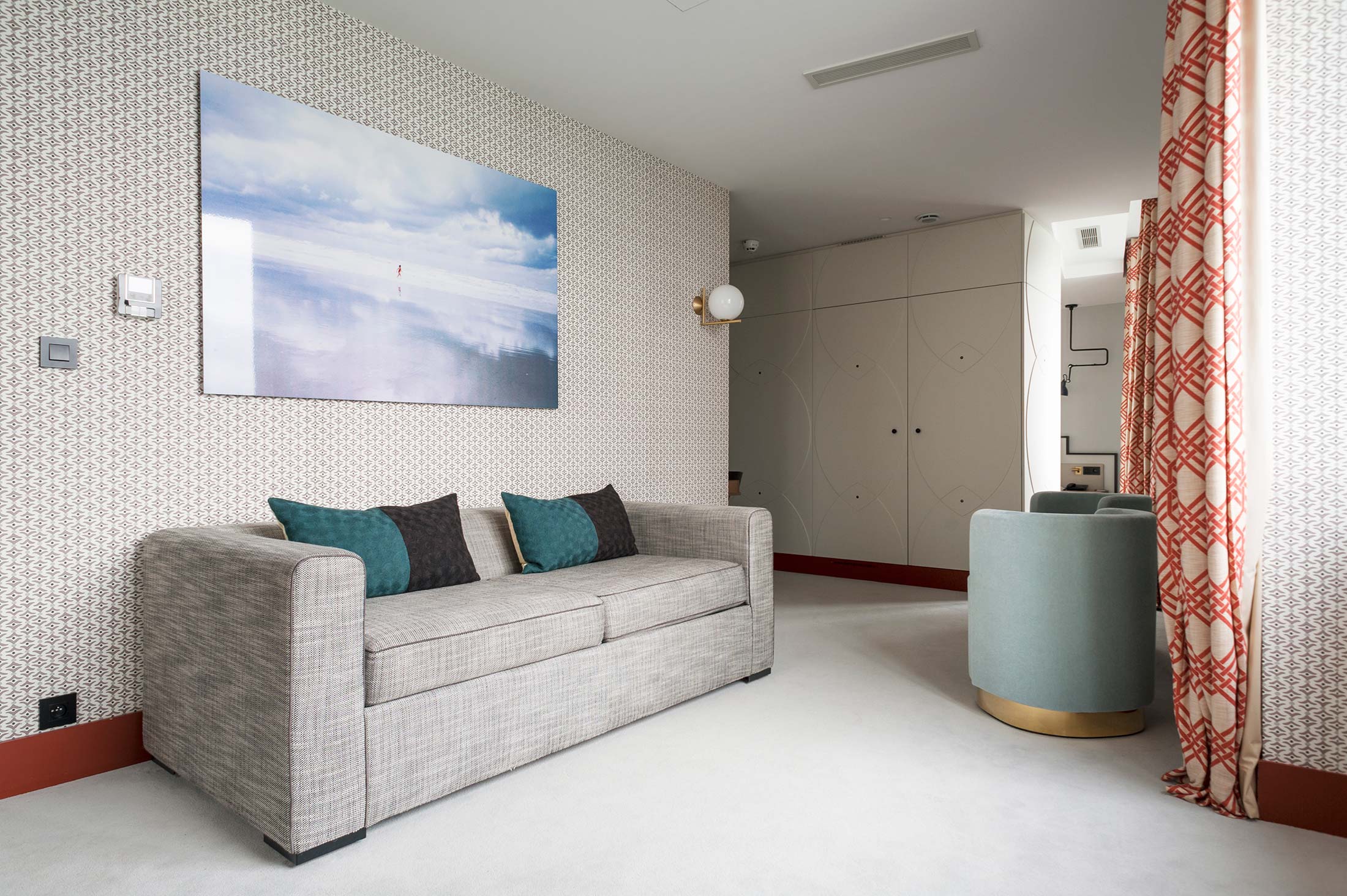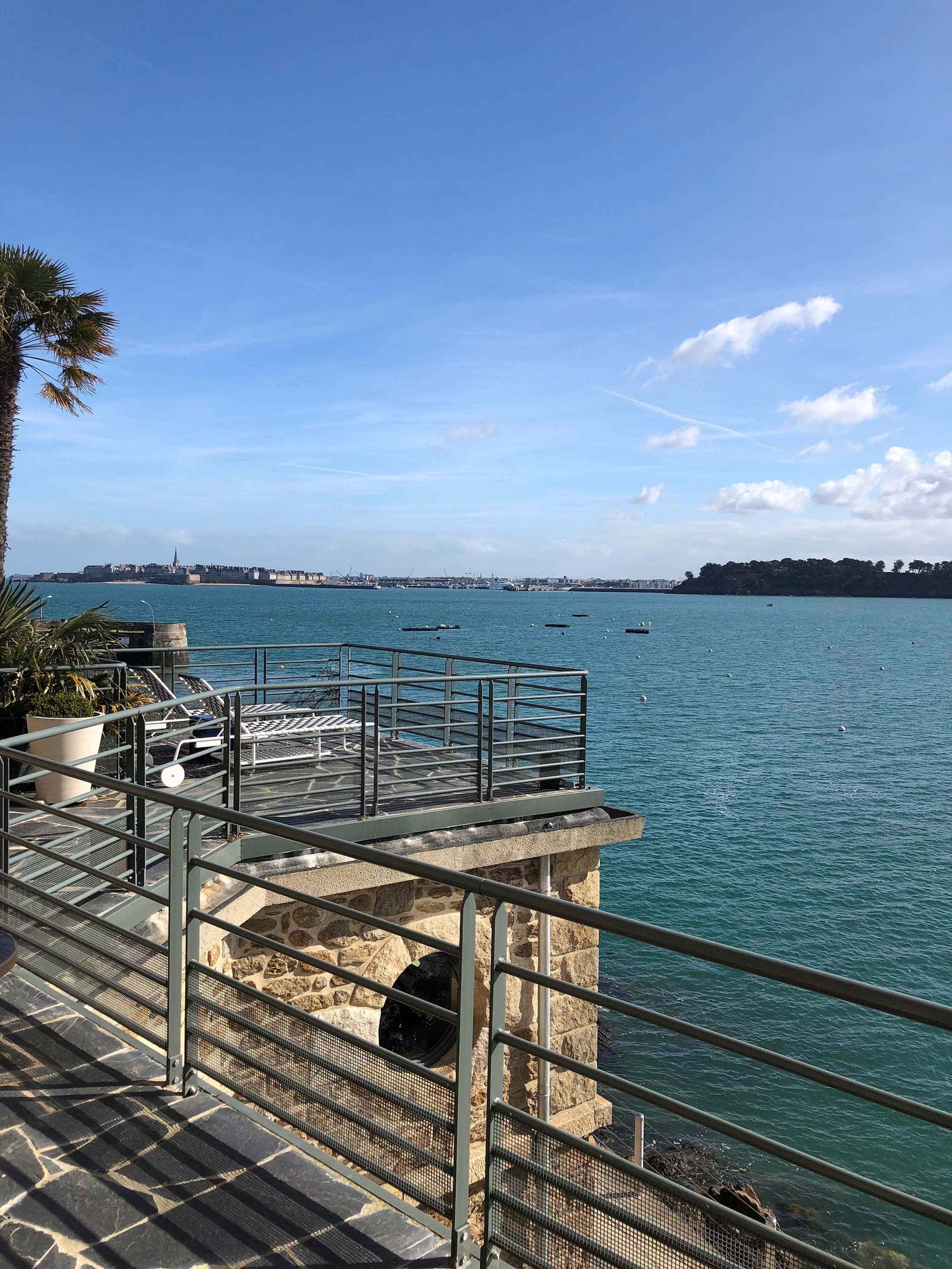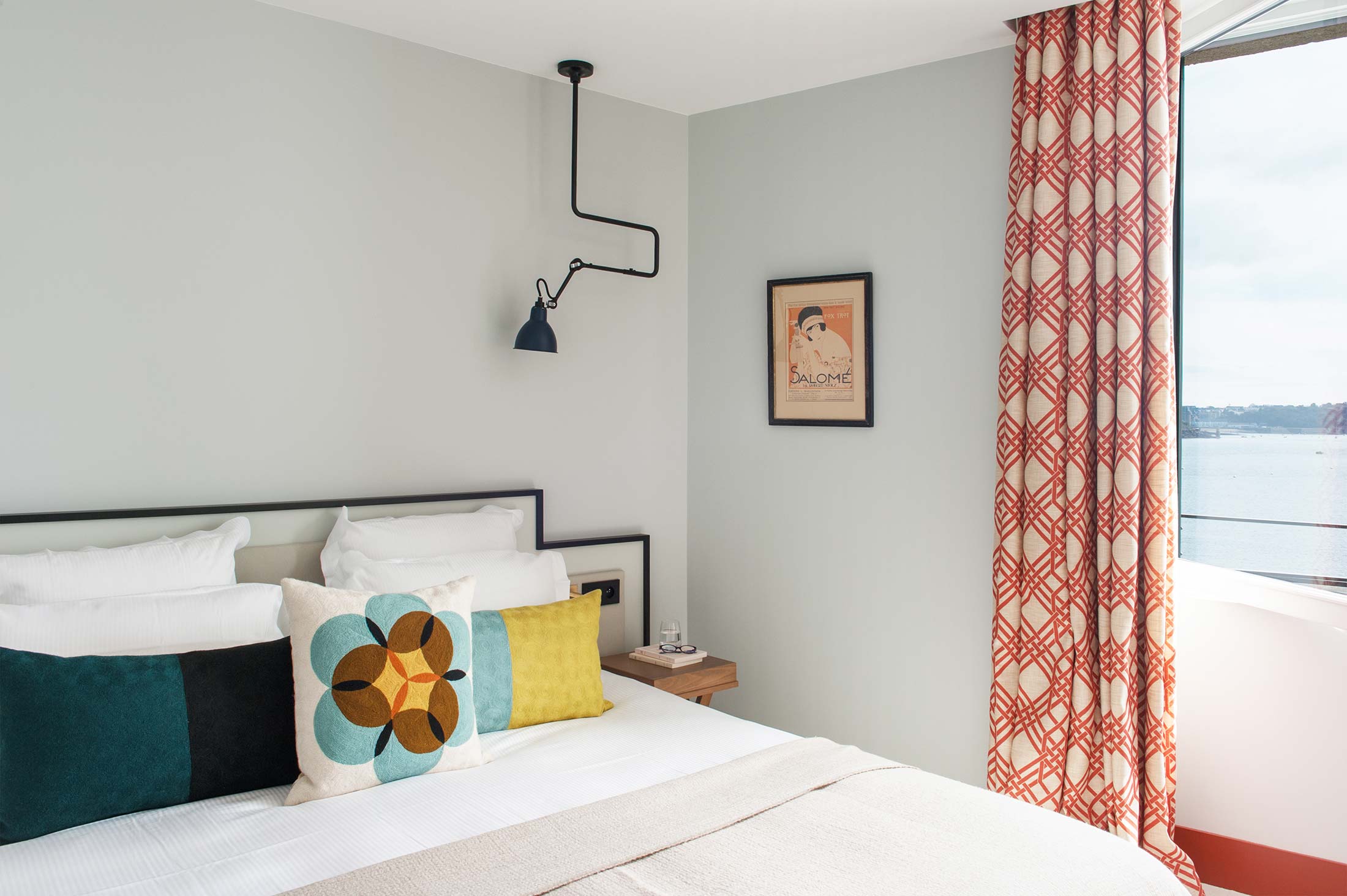 Nos chambres Prestige Terrasse vue mer disposent d'une magnifique terrasse offrant un panorama exceptionnel sur la côte dinardaise. Les chambres, à la décoration élégante, chaleureuse et colorée, offrent également un coin salon. Elles sont dotées d'une large penderie et d'une salle de bain équipée d'une baignoire et/ou d'une spacieuse douche à l’italienne. Offrez-vous le confort de ces chambres luxueuses à l’espace lumineux.