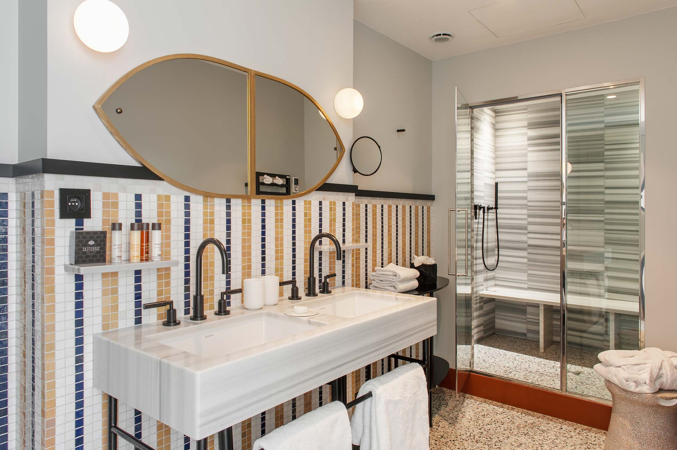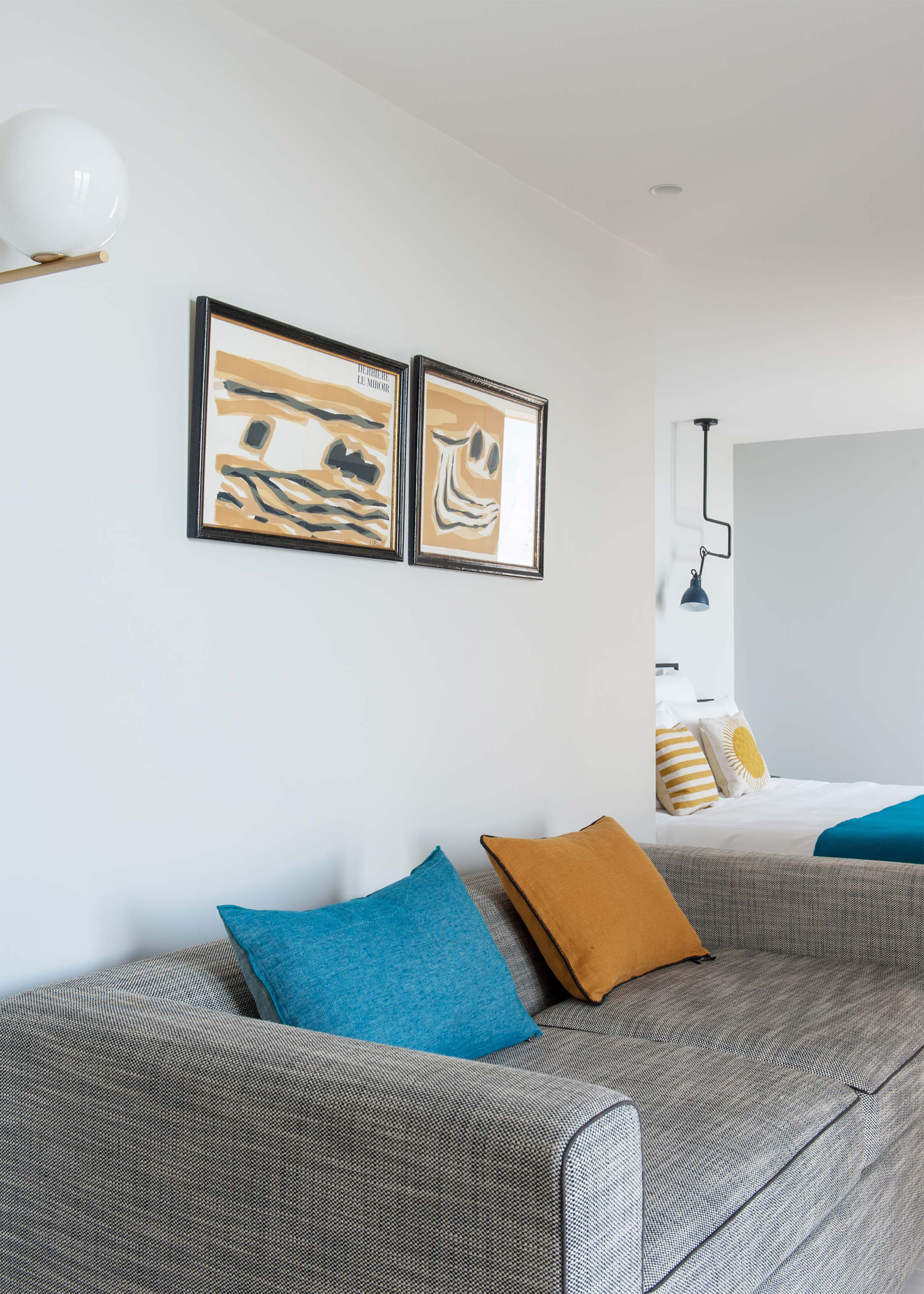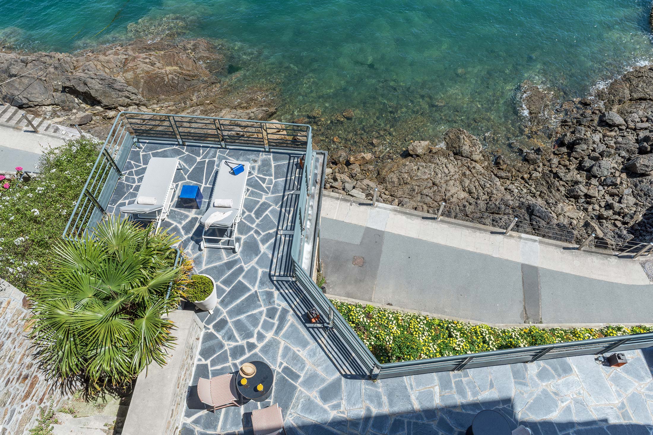 Nos chambres Prestige Terrasse vue mer disposent d'une magnifique terrasse offrant un panorama exceptionnel sur la côte dinardaise. Les chambres, à la décoration élégante, chaleureuse et colorée, offrent également un coin salon. Elles sont dotées d'une large penderie et d'une salle de bain équipée d'une baignoire et/ou d'une spacieuse douche à l’italienne. Offrez-vous le confort de ces chambres luxueuses à l’espace lumineux.