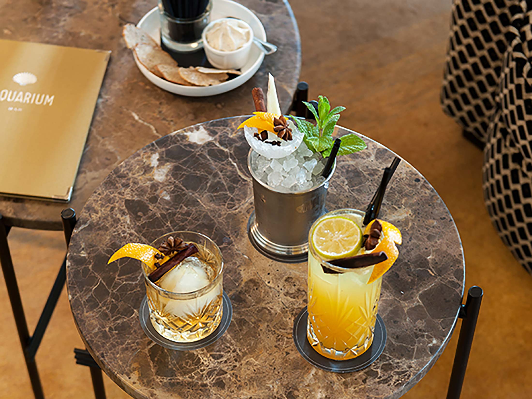 Confortevoli ed eleganti, di fronte al mare, il bar Aquarium e la lounge Charcot promettono momenti di calore in famiglia o con gli amici. Il nostro capo barman, Pierrick Pradel, e il suo team vi accolgono dalle 10.30 alle 22.30 per farvi scoprire i loro cocktail originali e i dolci della nostra capo pasticcera, Clara Boissay.